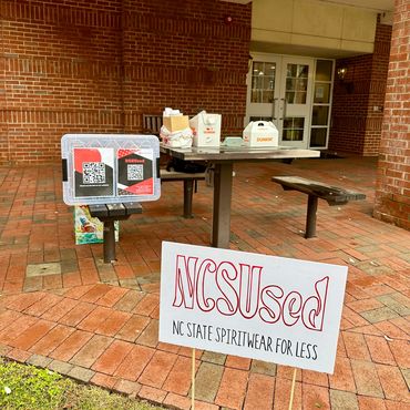NCSUsed collects NC State spiritwear donations from NC State alumni and any other interested community members, then resells the merchandise for a low price and wide variety of designs. It is a pop-up shop that appears in significant locations around campus (e.g., the Brickyard, Wolf Plaza, the Oval, etc.) on certain days to give students and community members the opportunity to purchase.